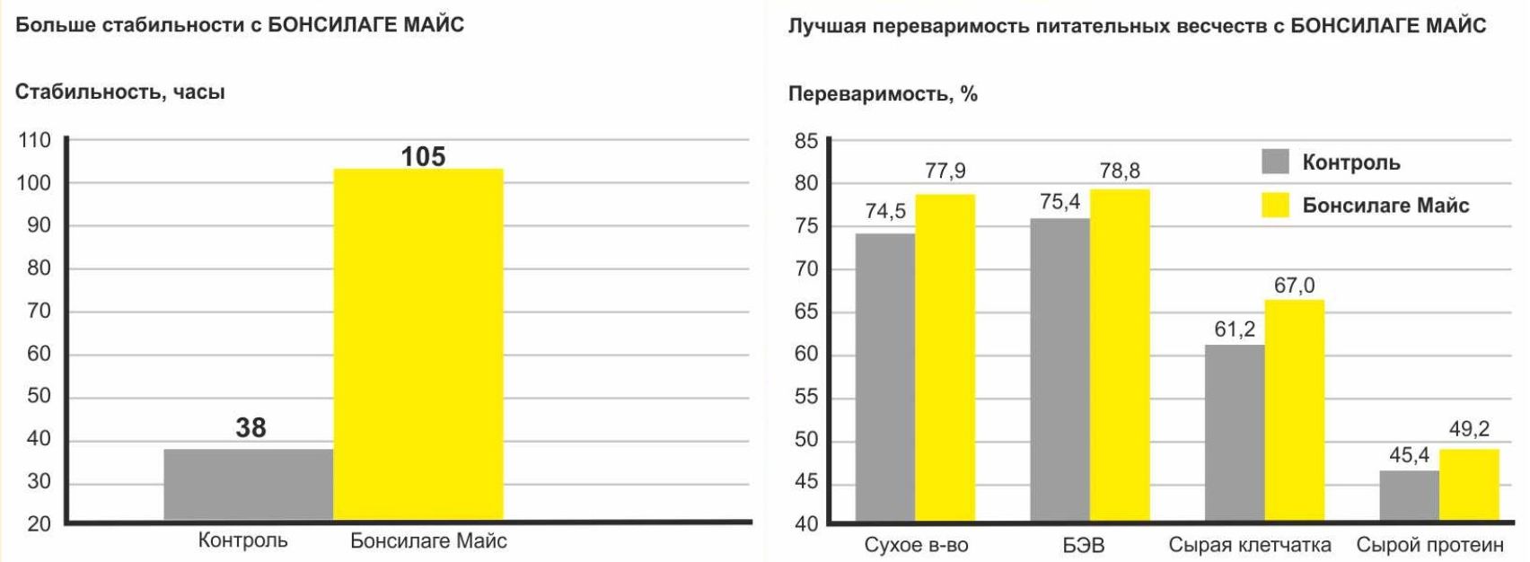 Воспользуйтесь и Вы преимуществами консерванта для силоса Бонсилаге Майс и получите хорошую выгоду от кормления аэробно стабильным, гигиенически безупречным высокоусваиваемым силосом.